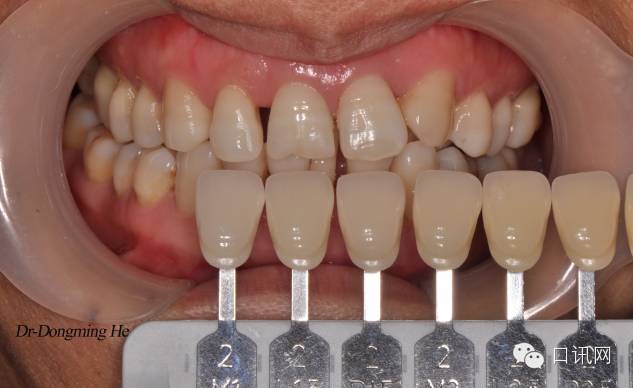 1.术前清洁牙面,喷砂处理掉牙面色素,比色拍照