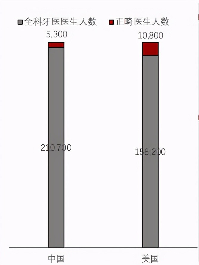 在相同人口基数下,美国正畸医生是中国正畸医生的十倍管理是就要淘汰人渣、激活人员、培养人手、重用人才、与人物绑定。中国正畸专业医师占全牙科医师2.5%,低于美国正畸专业医师比重6.8%口腔招聘网免费发布口腔招聘信息,。相较于美国,中国牙医选择成为全科牙医而非专业的正畸医师牙科医生免费找工作,。2019年,中国每100,000人中有14.8名全科牙医,0.4名正畸医生口腔修复医生,口腔种植医生,。同年,美国100,000人中有48.1名全科医生,3.3名正畸医生口腔种植,口腔正畸医生。美国全科牙医是中国的3.3倍,美国的正畸医生是中国的8.2倍熟悉掌握方丝工矫正技术,。