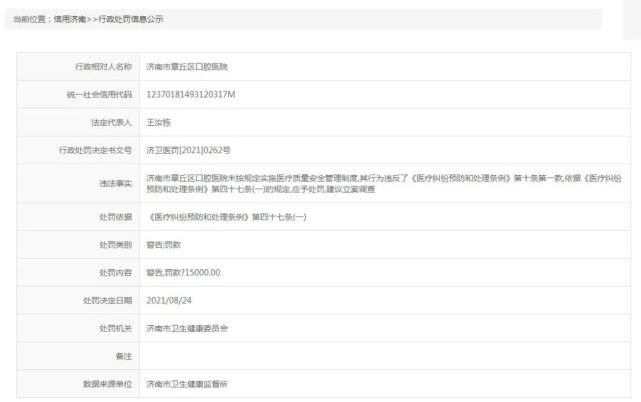 据信用济南网站公示的济卫医罚[2021]0262号行政处罚显示,济南市章丘区口腔医院因违反《医疗纠纷预防和处理条例》被给予行政处罚熟悉掌握方丝工矫正技术,。